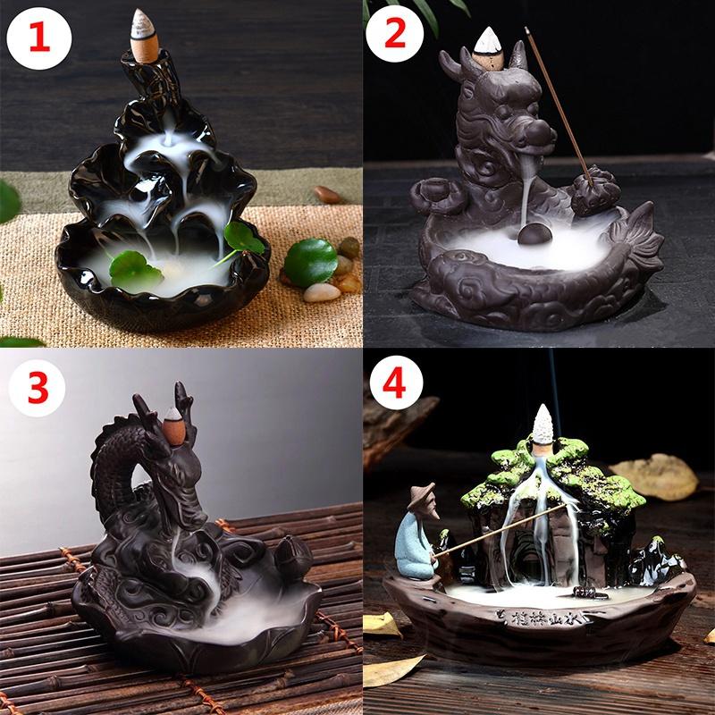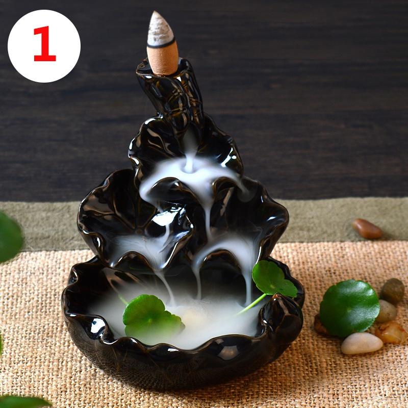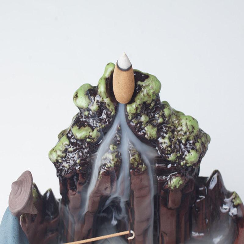 Backflow Ceramic Waterfall Glaze Incense Smoke Cone Burner Holder Home Decor [<lun>]
