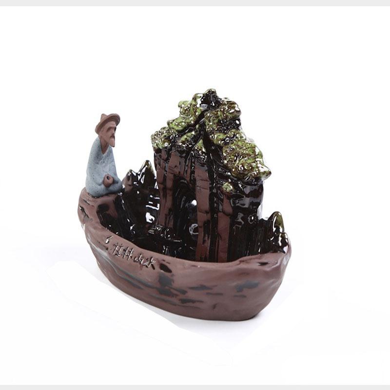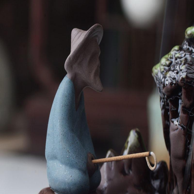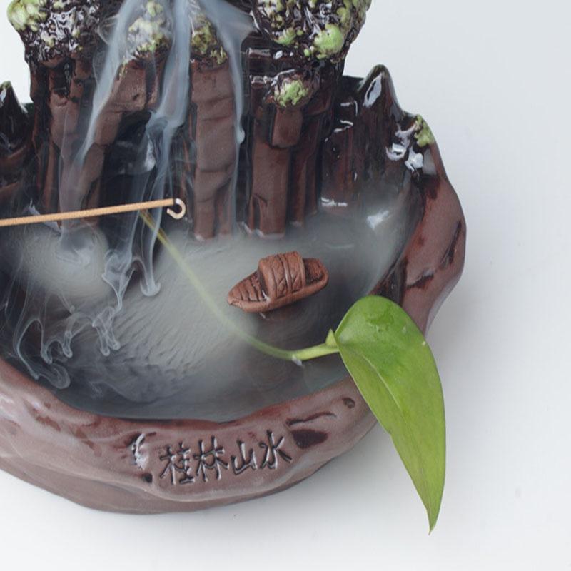 Backflow Incense Burner, Chinese traditional Handmade Beautiful Scene Ceramic Home Decor handmade gifts + 20 Backflow incense cones [<lun>]