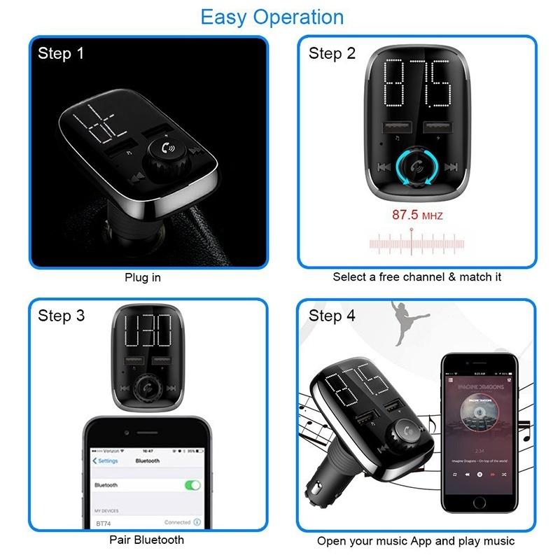 EASY TO USE - Plug and Play Design, to turn your car FM radio on, find an empty frequency (frequency range from 87.5 to 108 MHz), and match FM frequency pair Bluetooth, then there you go!