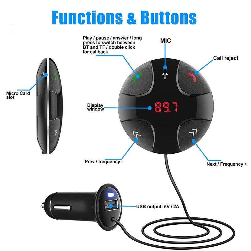 The Bluetooth FM Transmitter Receiver Car Kit is designed to provide a simple hands-free solution for answering and receiving phone calls while on the go. It also enables you to transfer music from compatible smartphones or other Bluetooth devices.