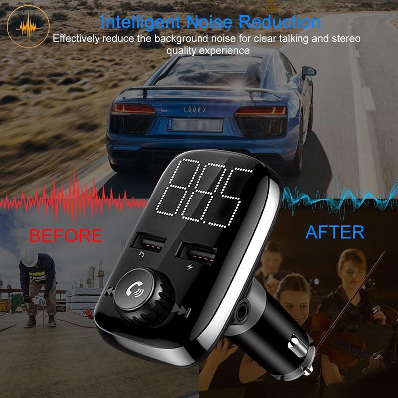 Bluetooth FM Transmitter for Car, Wireless Bluetooth Radio Transmitter Adapter Car Kit with Hand-Free Calling and Dual USB Ports