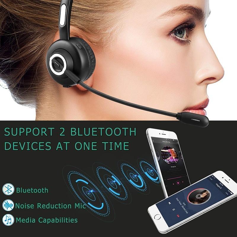 (Bluetooth 5.0 Intelligent Technology Multipoint Pairing)Our Bluetooth headsets possess Bluetooth V5.0, can simultaneously pair with 2 wireless devices, compatible with all Bluetooth enabled devices such as cell phones, TV, PC, PAD and so on. Range up to 32 feet from paired devices.