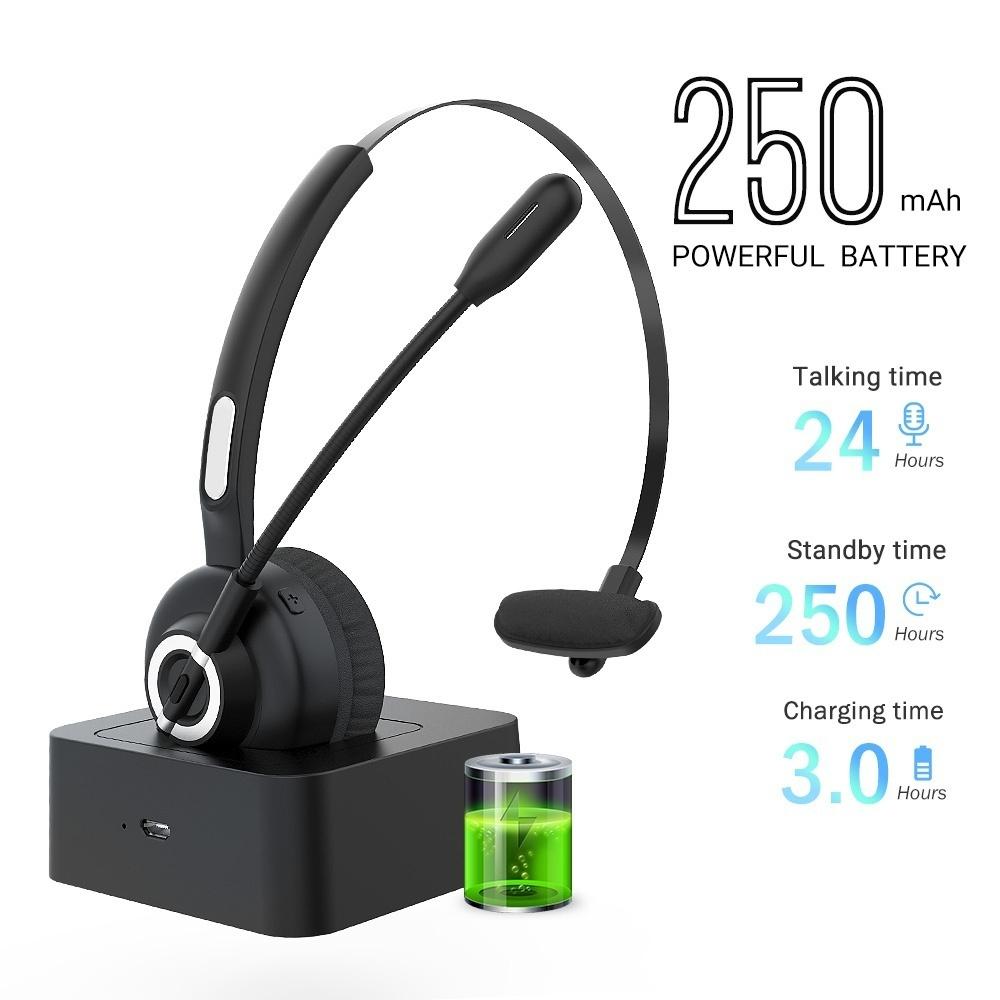 Bluetooth Headset, Wireless Headphone with mic,Noise Cancelling Trucker Bluetooth Headset,Handsfree Headset with Charging Dock for Call Center,Home,Smartphones,PC