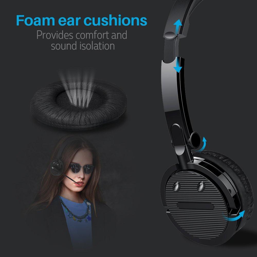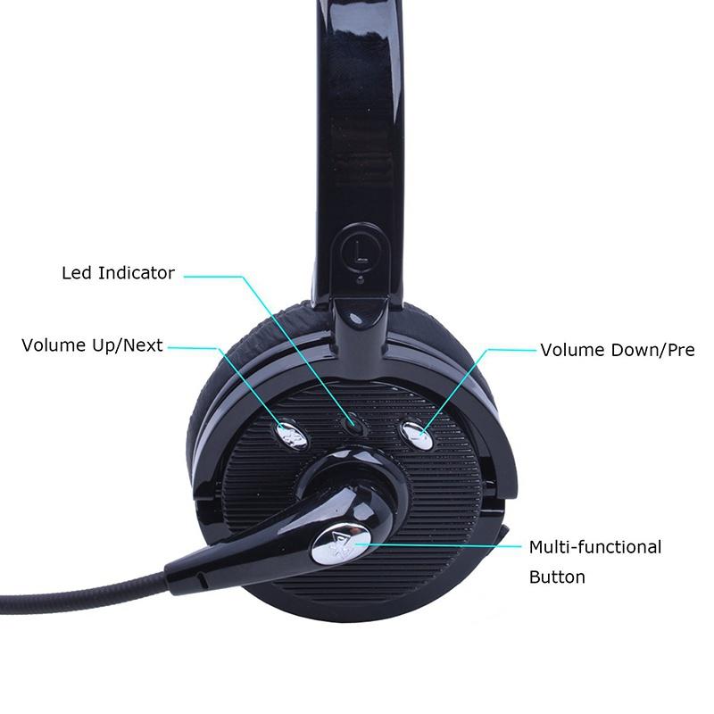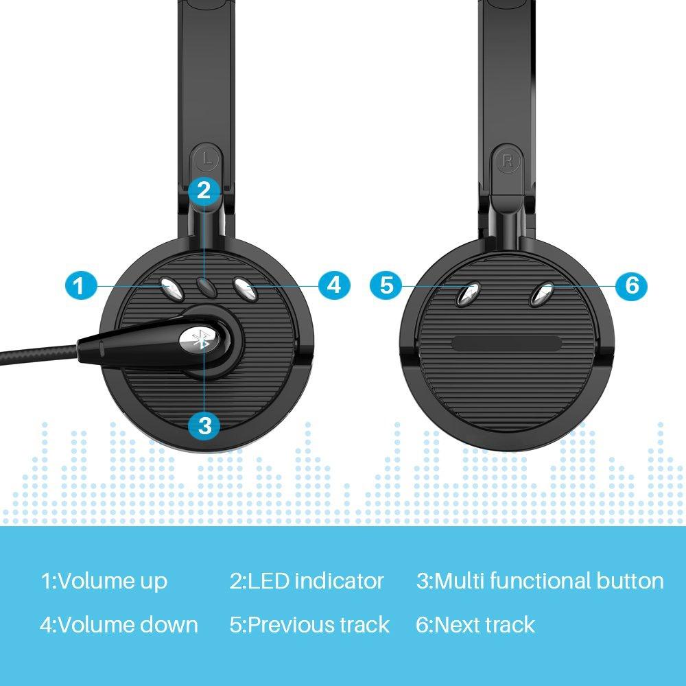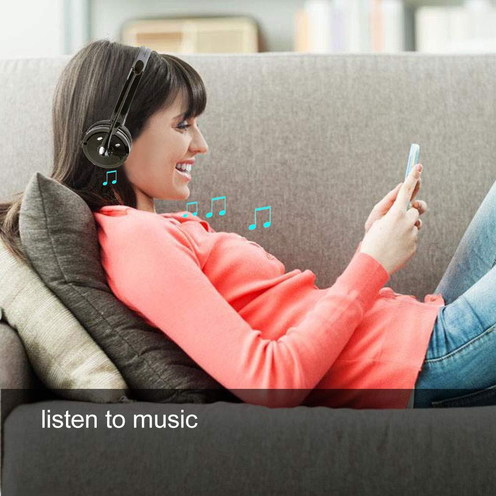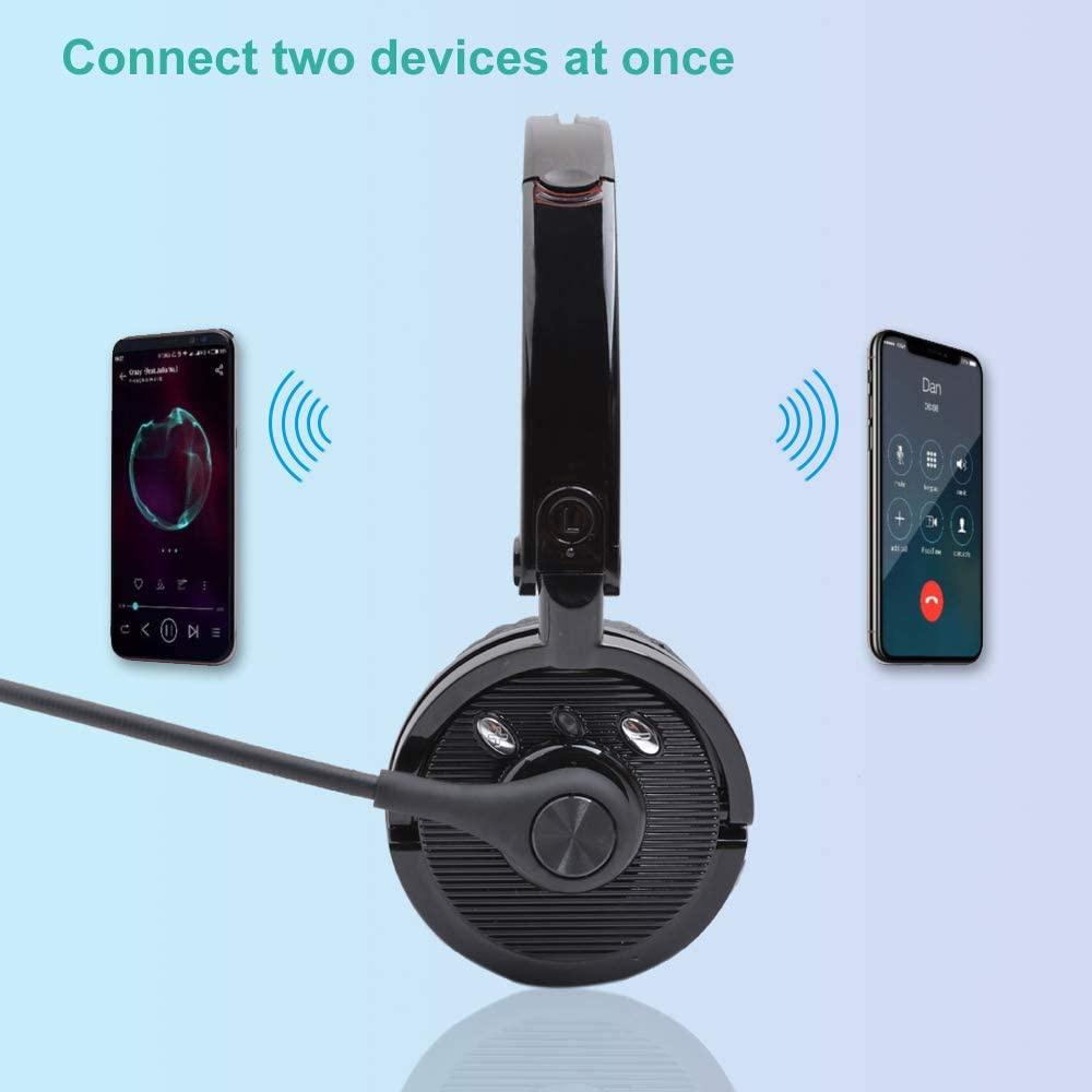 Bluetooth Headset with Microphone, Over-The-Head Wireless Stereo Headphones (Music Streaming, Hands-Free In Car, Up To 12 Hours, Noise Cancelling) for Truck Drivers and Telephone Operator (Black) [<lun>]