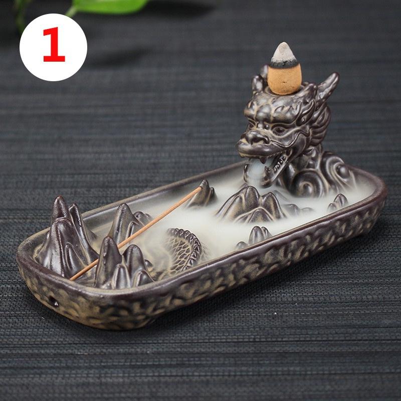 Ceramic sculpture reflux waterfall incense burner, can be used for home decoration meditation yoga gift [<lun>]