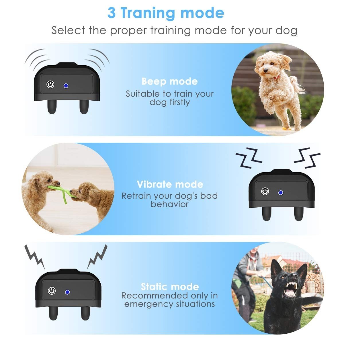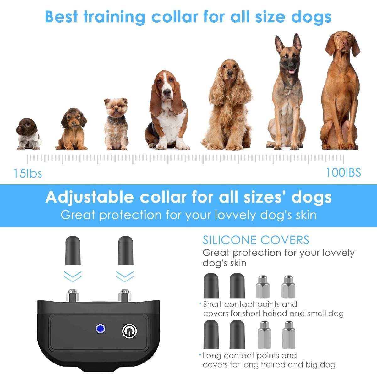 Safe, Multiple Training Modes – dog training collar features 3 efficient and safe training modes (beep, vibration and shock) with levels 1-100 for progressive behavioral obedience. Extra conductive silicone keeps collar skin contact safe.