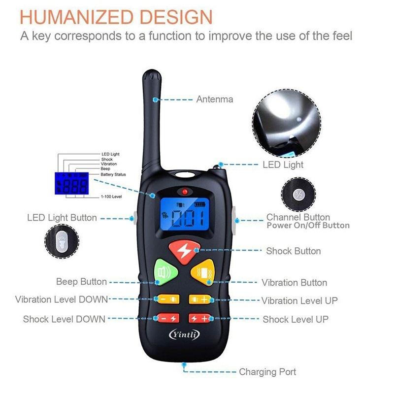 Long-Distance Remote – The wireless control reaches up to 1000ft making it easy to train your dog with Electronic Dog Training Collar in the park or backyard. The remote also features a dual channel to support training 2 dogs simultaneously.