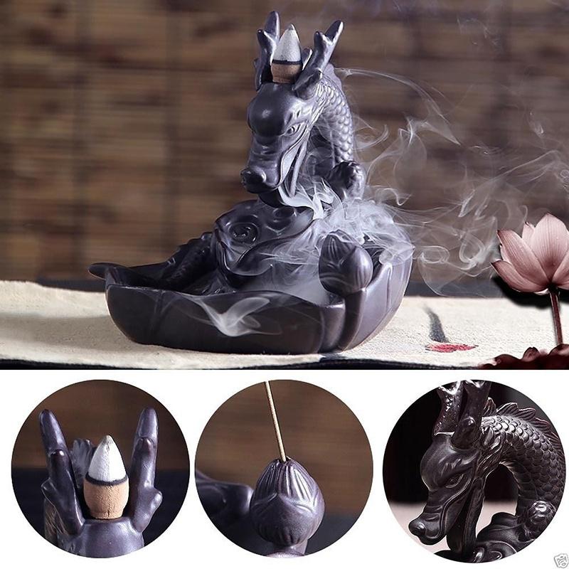 Dragon Incense Waterfall Handmade Backflow Incense Ceremic Incense Holder Aromatherapy Ornament Home Decor [<lun>]