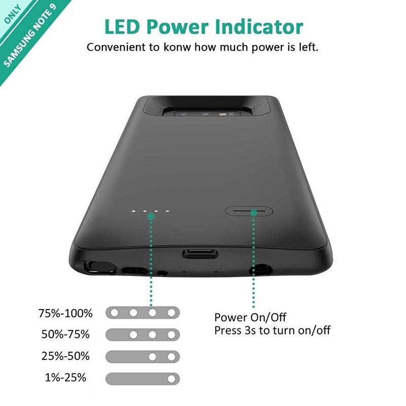 (90%+ MORE BATTERY LIFE)The powerful 5000mAh Li-polymer rechargeable battery case provides extra 45 hours talktime, 92 hours music time and 33 hours video time, fits well for Samsung Galaxy Note 9. With portable design, charging anytime and anywhere.