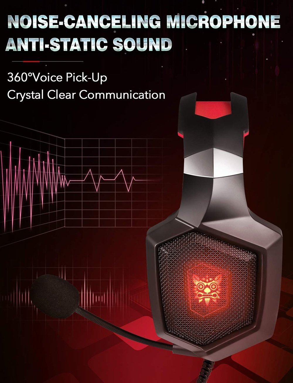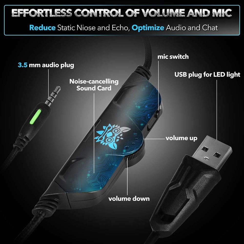 Gaming Headset PS4 Headset with 7.1 Surround Sound, Xbox One Headset w/ Noise Canceling Microphone & LED Light, Compatible with PS4, Xbox One, Switch, PC, Mac, Laptop, Over Ear Headphones