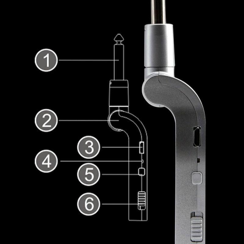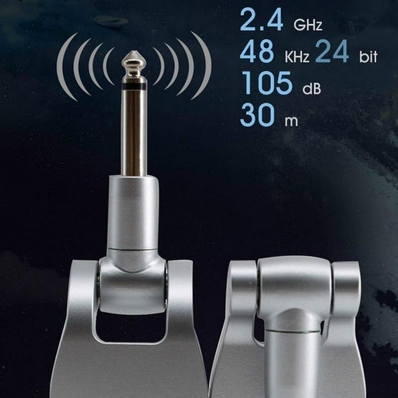 Guitar System Transmitter & Receiver 2.4G Wireless Built-in Rechargeable Lithium Battery 30M Transmission Range for Electric Guitar Bass (Silver/Black)