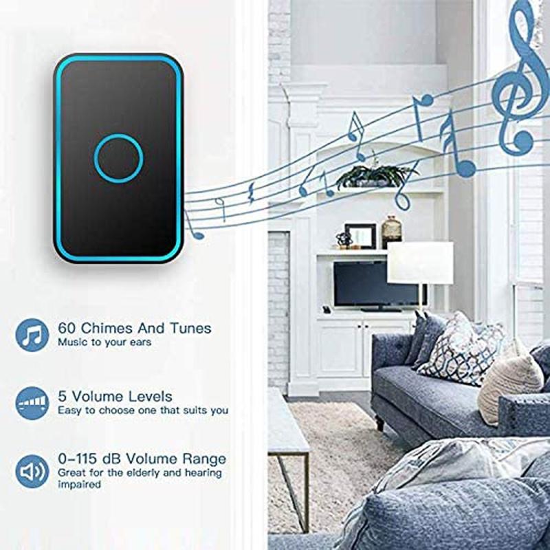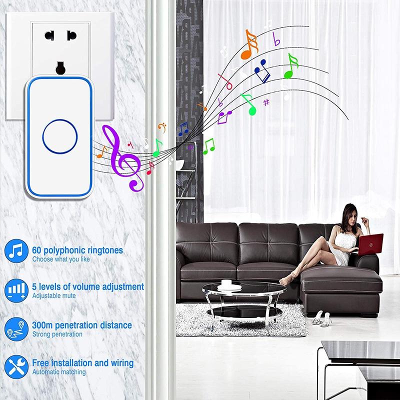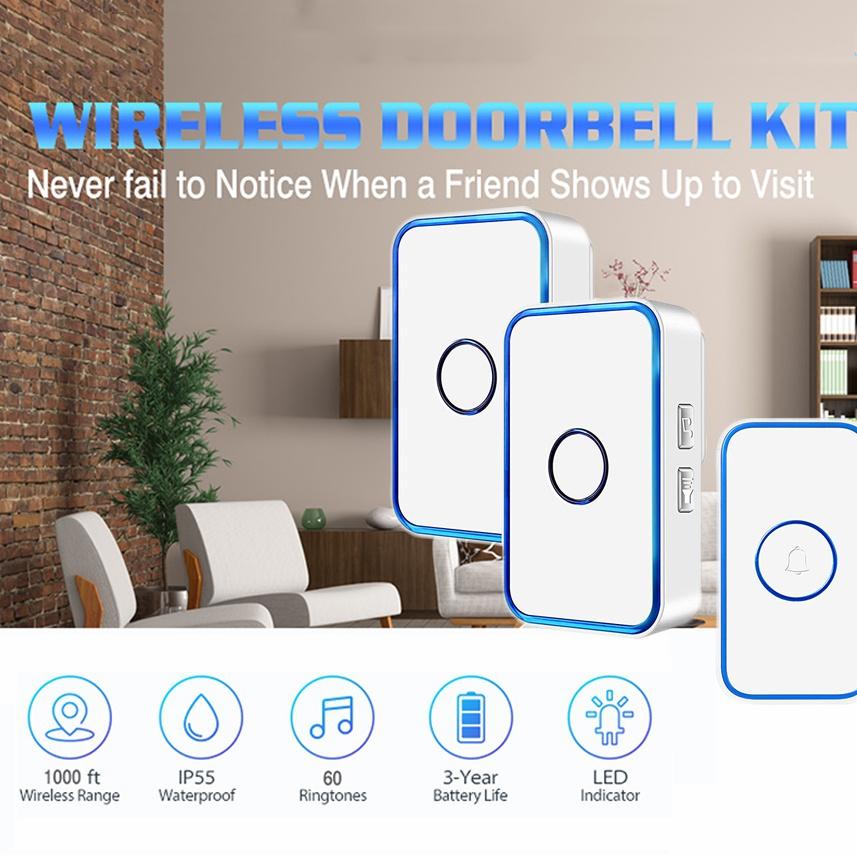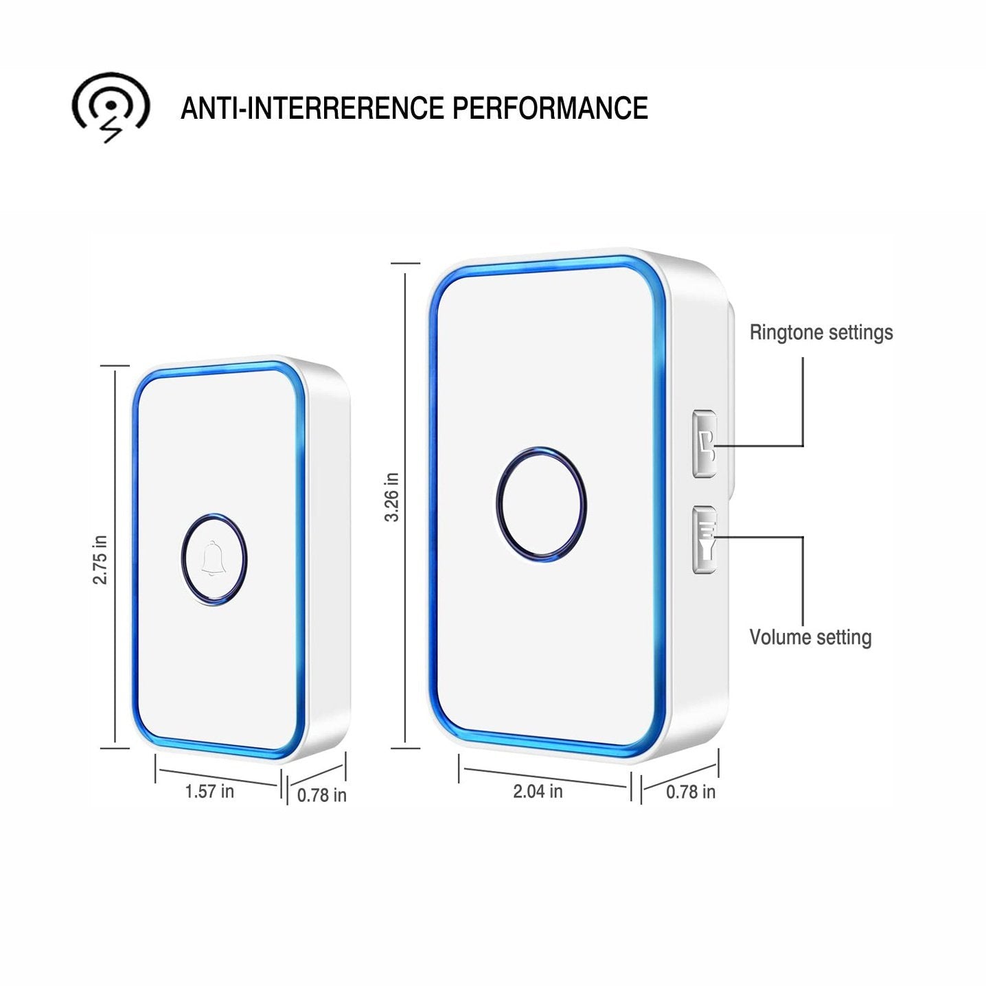 Latest Wireless Doorbell with 2 Receivers, IP55 Waterproof Doorbell, 1500 Feet Range, 5 Volume Levels, 60 Chimes & LED Flash