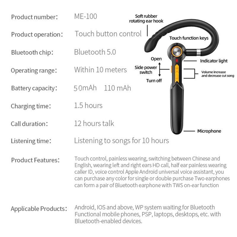 Bluetooth Headset 5.0: Through Bluetooth 5.0 Wireless headset audio technology and enhanced voice clarity . That Suitable for mobile calls, streaming music, and GPS directions and so on.