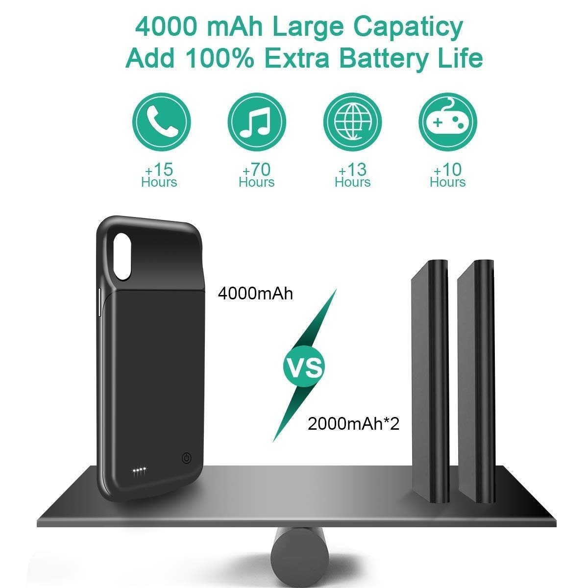 (Charging and Protecting 2 in 1)Battery charger case compatible iPhone (2018), made of soft TPU rubber, provide full edge protection, against scratches or daily damage. convenient for daliy use and provide battery power for you during emergencies