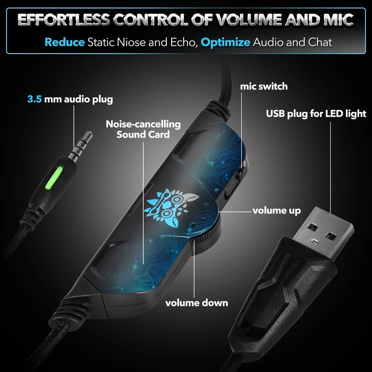 Fantastic LED light on both sides of the gaming headset, Mute the microphone and the LED light would turn off at the same time. Note: Please make sure the USB plug is plugged into a USB power port to turn on the LED light.