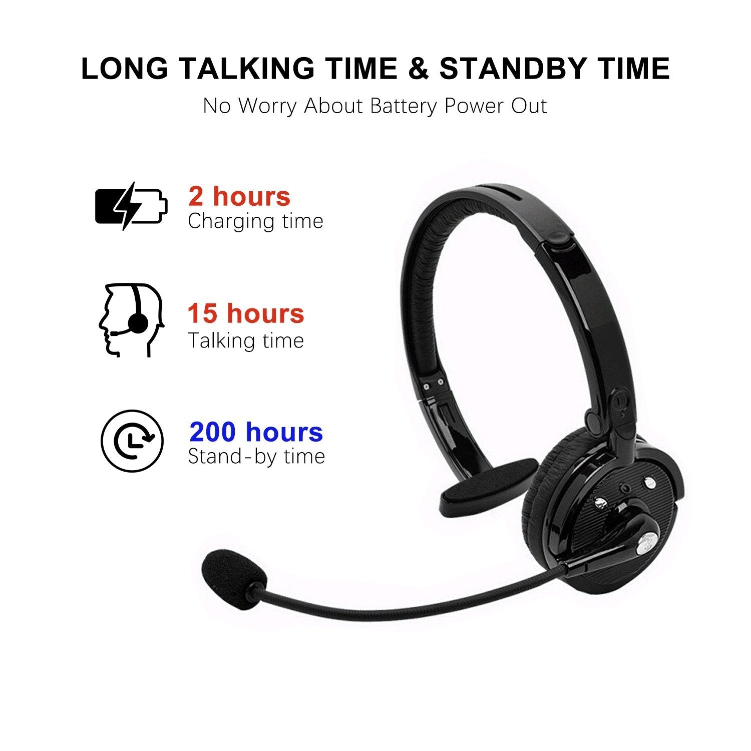 Pro Trucker Bluetooth Headset Cell Phone Headset with Microphone, Office Wireless Headset, Over the Head Earpiece, On Ear Car