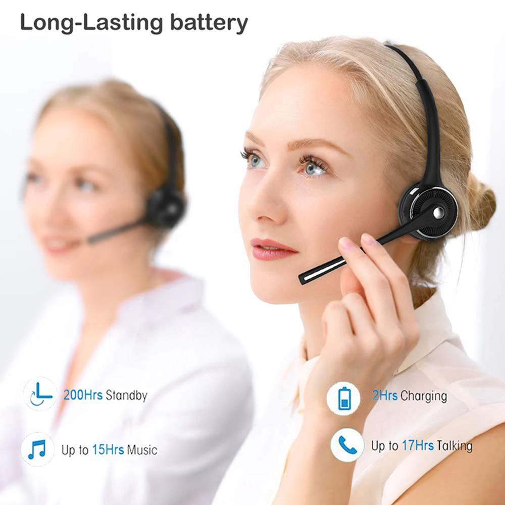 Pro Trucker Bluetooth Headset/Office Wireless Headset, Bluetooth Earpiece Noise Cancelling Headphones with Microphone,Charging Dock,Mute Function for Car Call Center iPhone Android Cell Phones [<lun>]
