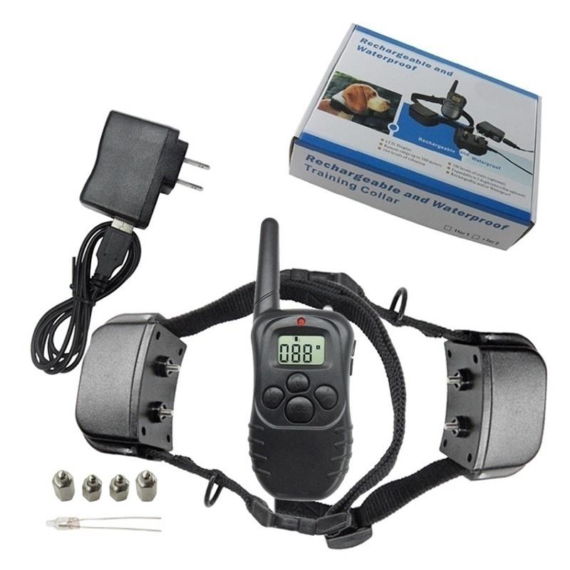 Professional LCD Electric 300M 100LV Levels Waterproof Shock Vibra Pet Training Collar Electric Pet Dog Training Remote Control Collar (Color: Black)